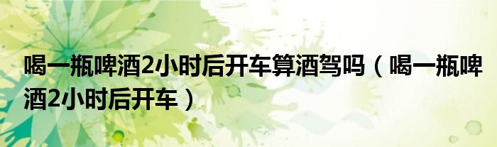 以上就是喝一瓶啤酒2小时后开车这篇文章的一些介绍,希望对大家有所帮助。